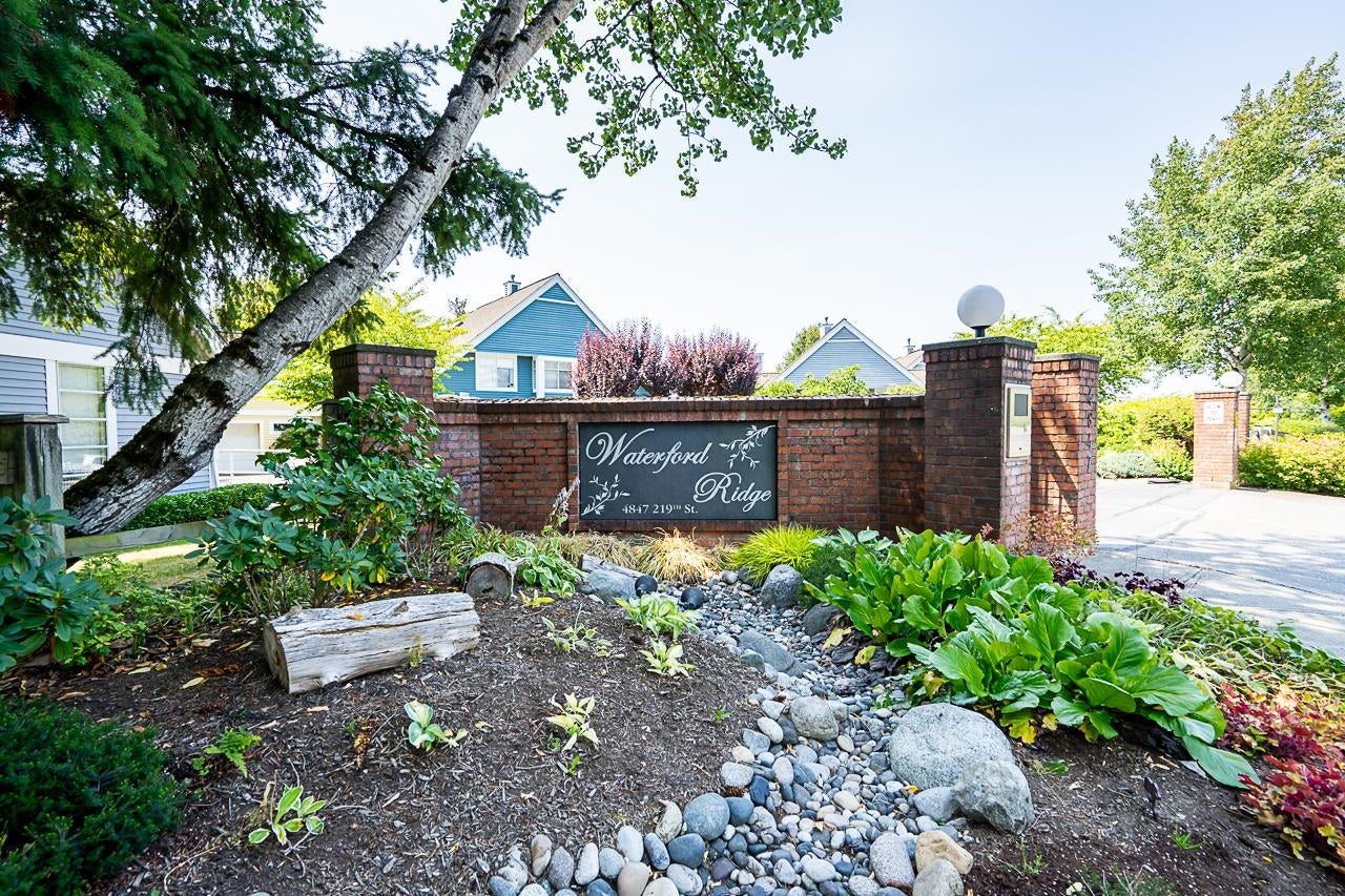 Waterford Ridge at 4847 219 Street. This award winning complex is located within walking distance to schools, rec centre, shops, library, wave pool, trails etc. The complex features 55 units with 1 units on 21841 48 and 54 units on 4847 219.There are 55 strata units in the building. Nearby Schools are Langley Fine Arts School, H.D. Stafford MIddle School, R.E. Mountain Secondary School. D.W. Poppy Secondary School and Aldergrove Secondary School. The closest park is Murrayville Skatepark. Supermarkets and grocery stores nearby are Safeway Langley Fraser Crossing, IGA, Safeway Willowbrook and Buy-Low Foods. Transit and major routes are close by and within walking distance. Waterford Ridge has a club house, and allows rentals and two pets with restrictions.