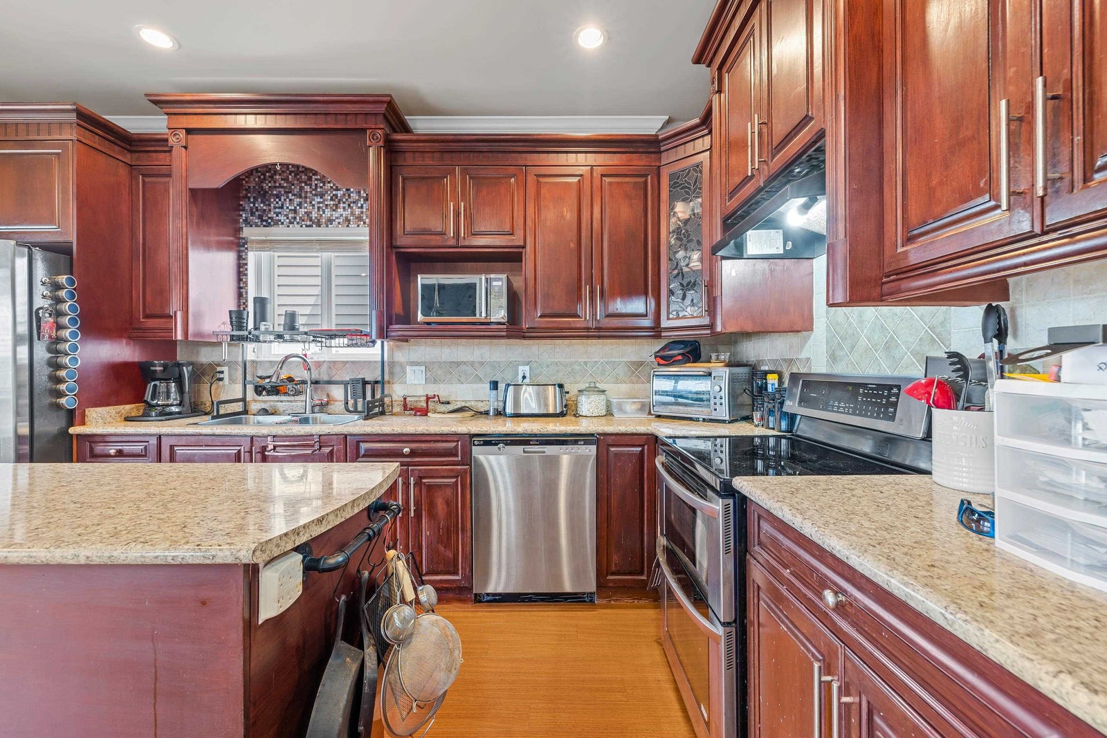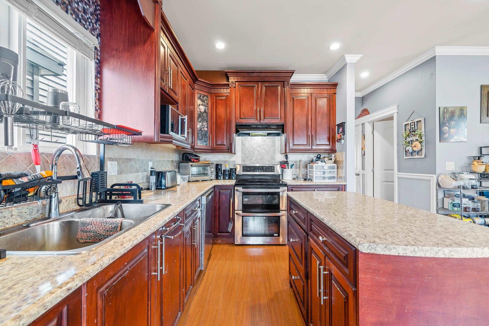 Best value in town! This fantastic Heritage inspired two storey home with basement includes a 2 bedroom suite. Popular Clayton Heights family neighbourhood. This charming home boasts 9 ft. ceiling, 2 cozy gas fireplaces, large gourmet kitchen loaded with cabinets, a large workstation/island and stainless steel appliances, plus 4 generous bedrooms upstairs and a 2 bedroom suite in basement. Great mortgage helper. Lovely backyard with 8 ft. privacy fence, interlocking brick patio and a large covered sundeck perfect for BBQ’s and family fun. Nice big shed and detached double garage for plenty of storage. Your handsome exterior has an oversized front porch. Ideally located near schools, parks, shops, and commuting to Vancouver. Call quickly!